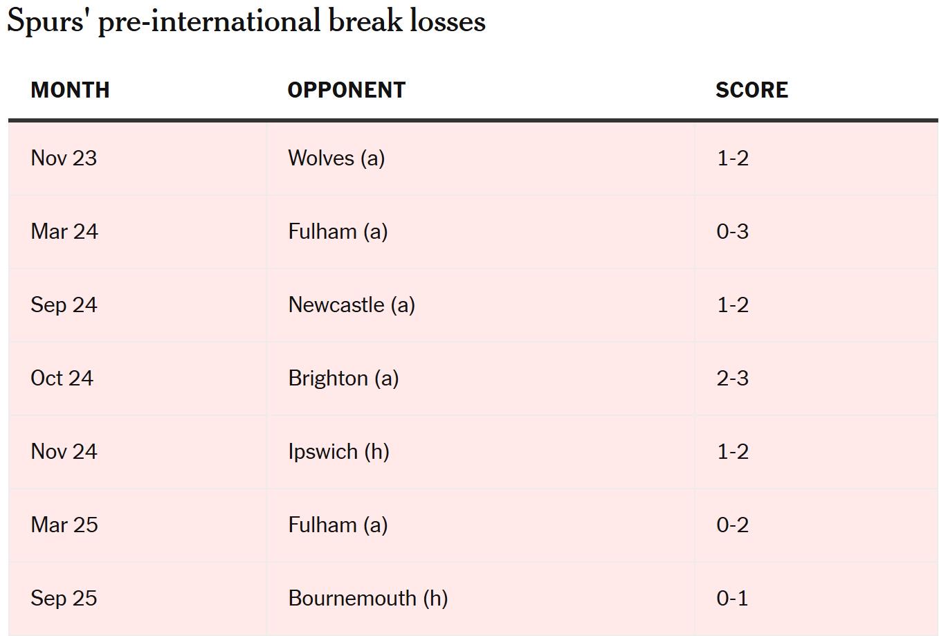 雖然部分比賽可以用傷病或輪換來解釋,但整體而言,這條“怪異連敗”足以引發(fā)擔(dān)憂。如今,在弗蘭克的帶領(lǐng)下,熱刺將在周六客戰(zhàn)利茲聯(lián),這場比賽再次恰逢國際比賽日前夕。