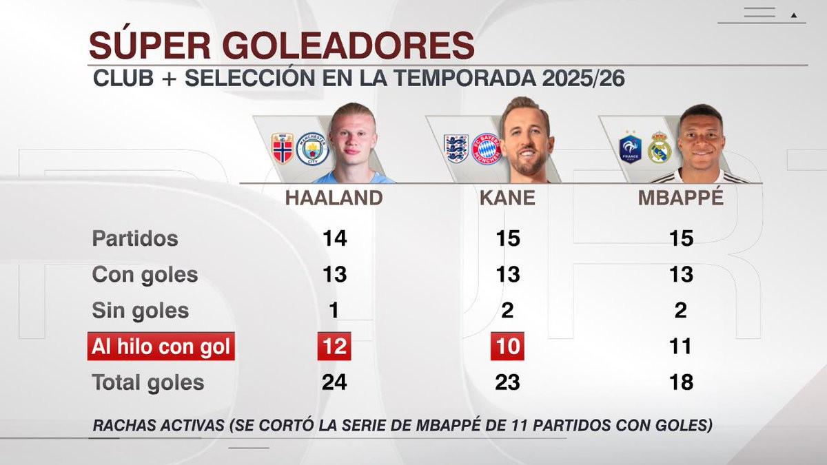 而姆巴佩本輪歐冠沒有進球,蘭德連場連續(xù)進球場次停留在11場。凱恩