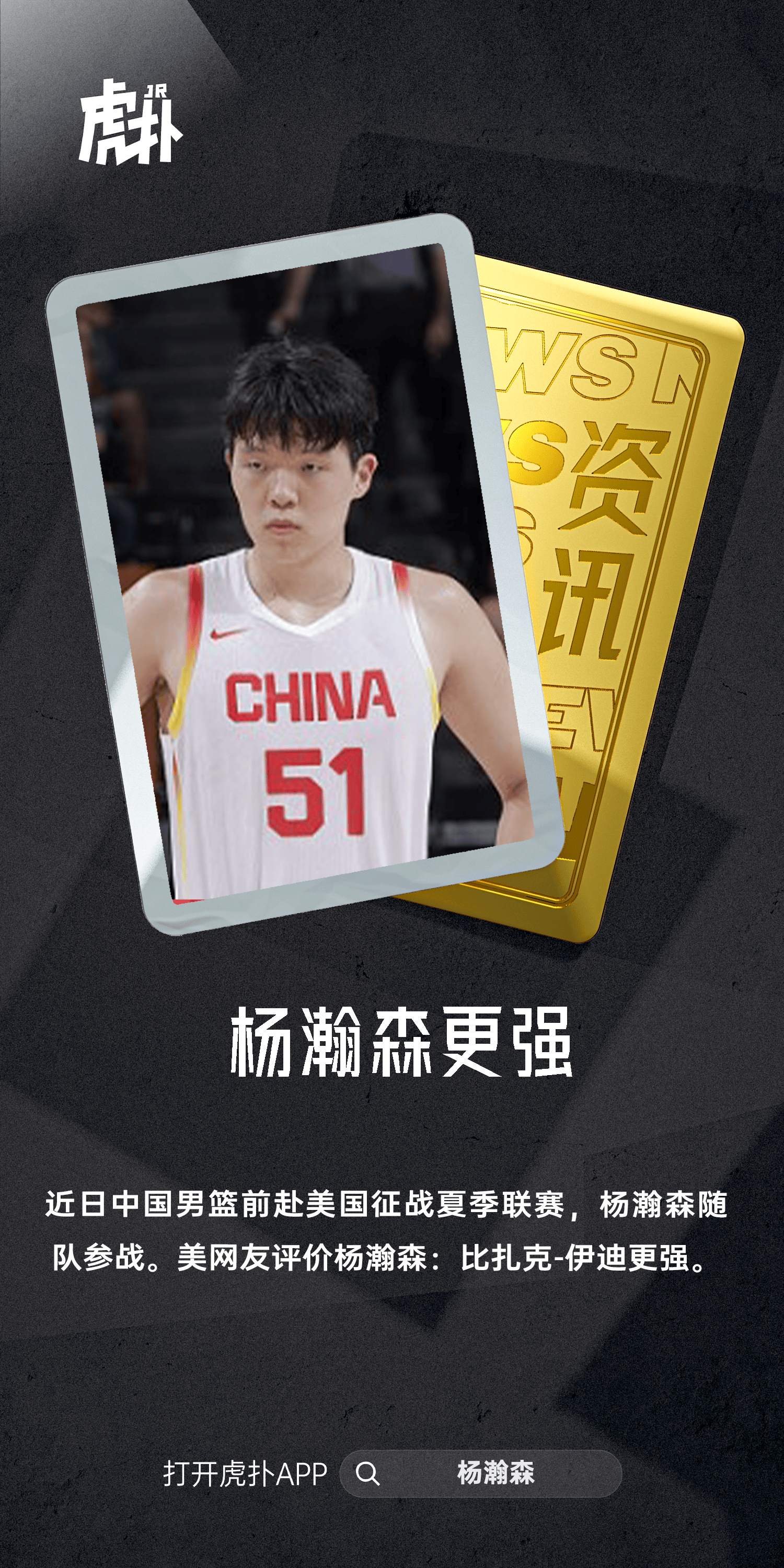 虎撲07月11日訊 近日中國男籃前赴美國征戰(zhàn)夏季聯(lián)賽,中鋒楊瀚森隨隊(duì)參戰(zhàn)。友評