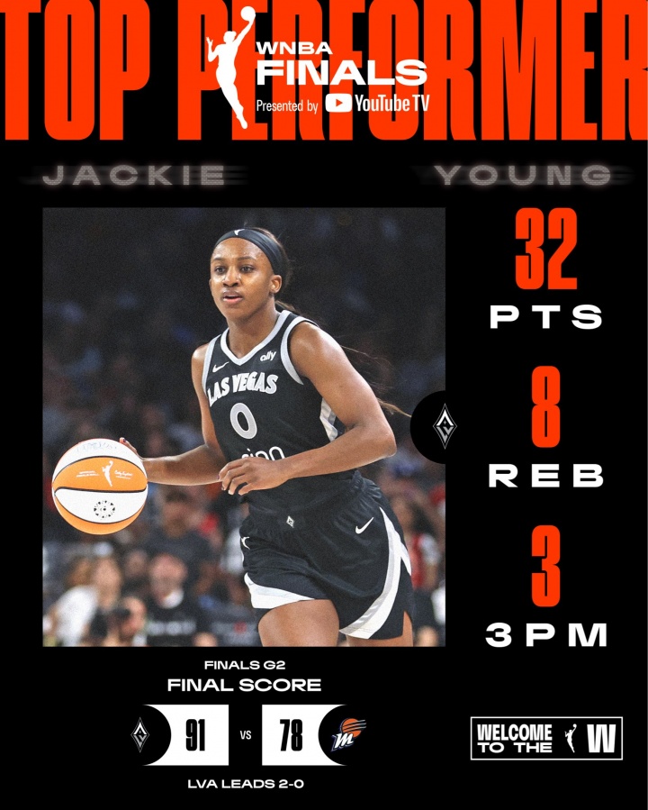 其中第三節(jié),殺瘋杰基杰基-楊單節(jié)狂砍21分,殺瘋杰基創(chuàng)WNBA總決賽單節(jié)得分紀(jì)錄。殺瘋杰基