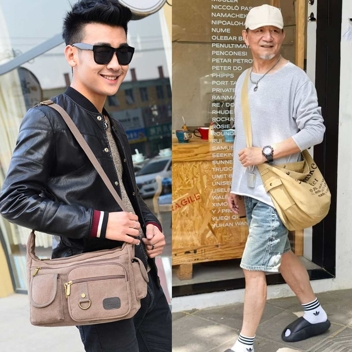 中年男人所穿戴的服飾,都是身份品味的體現(xiàn)。斜挎包本身帶有一種 “街邊商販” 或是 “售票員” 的感覺,與中年男人成熟穩(wěn)重的氣質(zhì)相悖。