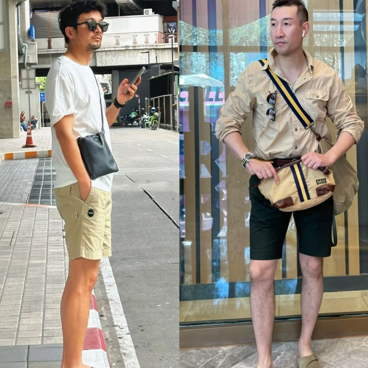 對于本身身高不占優(yōu)勢,或是體型微胖的中年男人來說, 斜挎包還會切割整體線條,視覺上顯矮,既暴露身材短板,又顯得不夠利落。