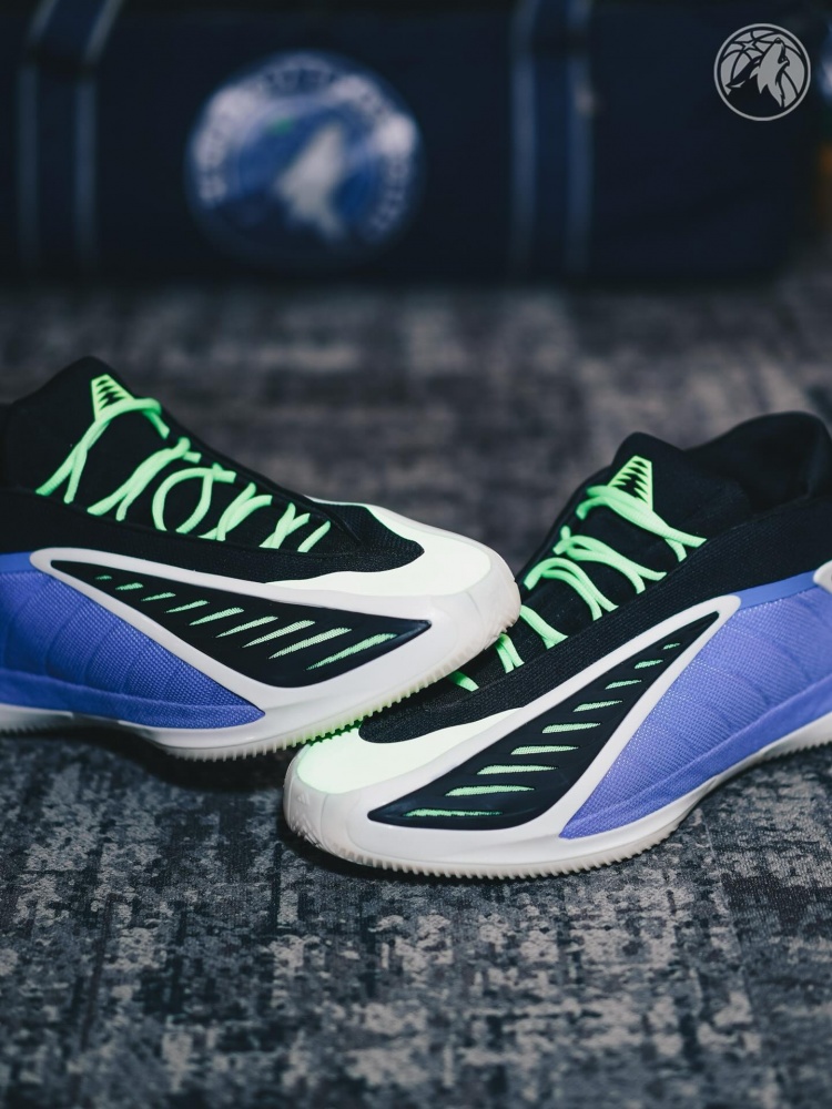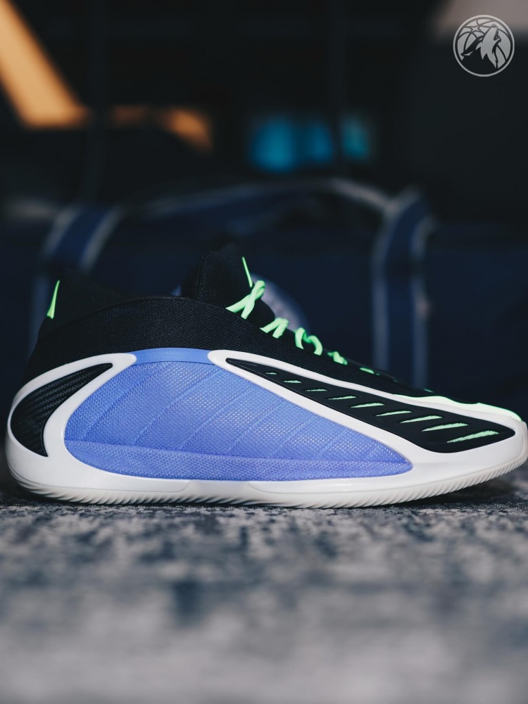 直播吧10月23日訊 森林狼官方社媒今天曬出的比第愛德華茲揭幕戰(zhàn)戰(zhàn)靴,這是代好德華愛德華茲個人第二代簽名鞋AE 2“Blue Burst”配色。