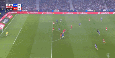 第34分鐘,佩佩禁區(qū)無人防守抽射打門,波爾圖皮球一腳踢高