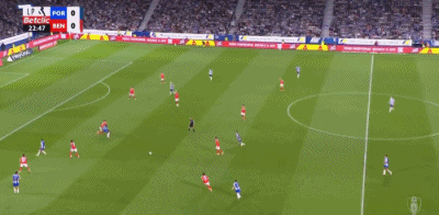 第30分鐘,科斯塔及時(shí)出擊,波爾圖化解本菲卡長(zhǎng)傳進(jìn)攻