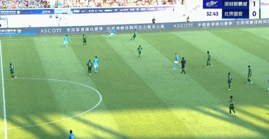 第33分鐘,埃杜-加西亞傳中,國安韋斯利門前推射得手,半場新鵬城2-0領(lǐng)先國安