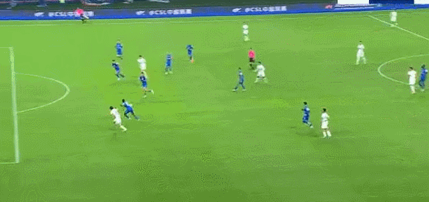 第39分鐘,佩尼亞直塞,鐘佩直塞劉祝潤面對門將打遠角得手!尼亞申花0-2落后英博