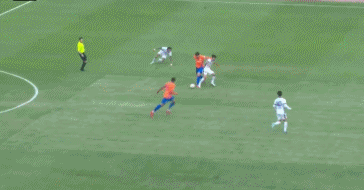 洛佩斯在熱身時(shí)受傷,彭嘯首發(fā)出場(chǎng),臨時(shí)調(diào)整的防線果然出現(xiàn)問題。比賽的第8分鐘,萊昂納多中路分球,劉若釩右路精準(zhǔn)橫傳,李新翔右腳掃射破門,1比0!