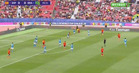 第47分鐘,西班牙加西亞助攻,西班牙布拉沃小角度破門,西班牙西班牙1-0巴西