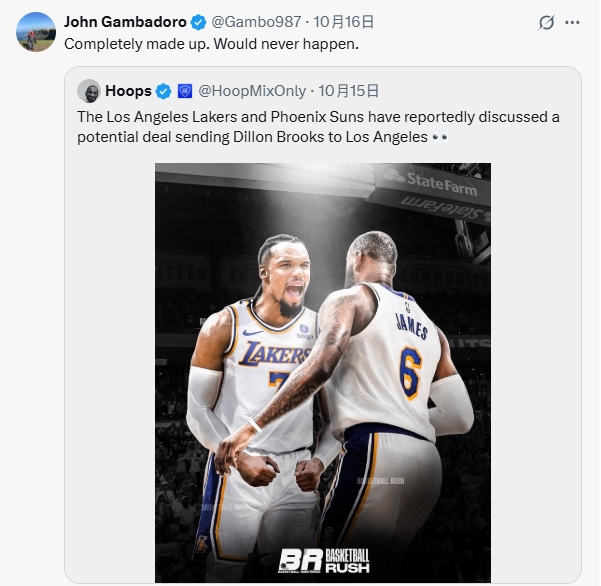 但太陽隊記John Gambadoro轉(zhuǎn)發(fā)了該推文進(jìn)行辟謠:“純屬虛構(gòu),日記絕不可能發(fā)生。線辟”