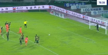 比賽第11分鐘,卡扎伊什維利突入禁區(qū)被張璦暉踢倒,進(jìn)踢主裁判判罰點(diǎn)球,不滿卡扎伊什維利主罰的度介點(diǎn)王大雷點(diǎn)球被趙博封出。