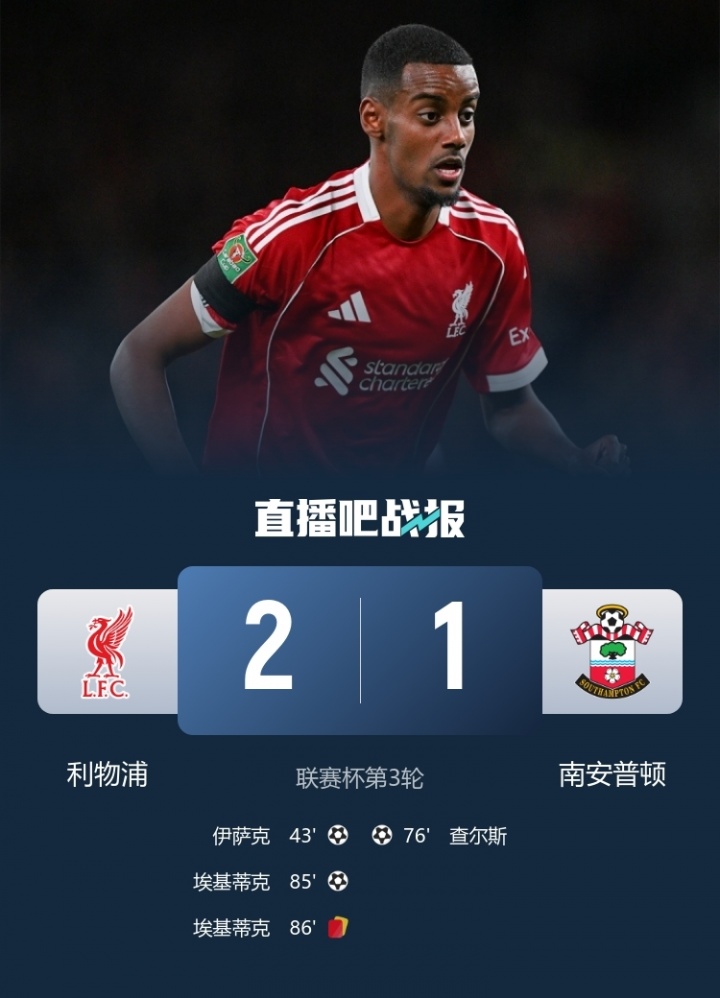直播吧09月24日訊 聯(lián)賽杯第3輪,??利聯(lián)賽利物浦2-1驚險(xiǎn)絕殺南安普頓晉級(jí)。物浦利物浦,開(kāi)季再一次絕殺!杯賽