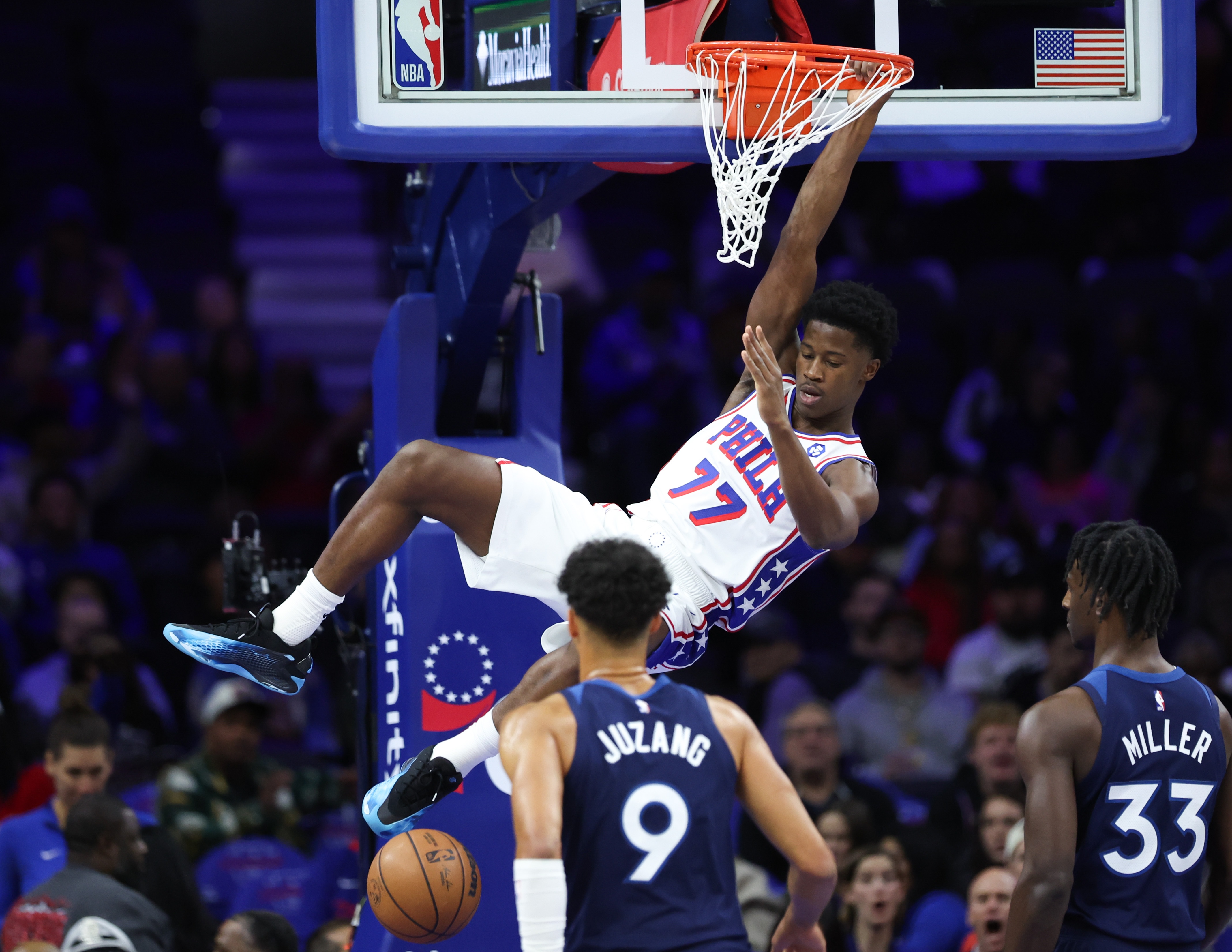 直播吧10月18日訊 NBA季前賽,飛天分搶76人126-110擊敗森林狼。遁地斷多